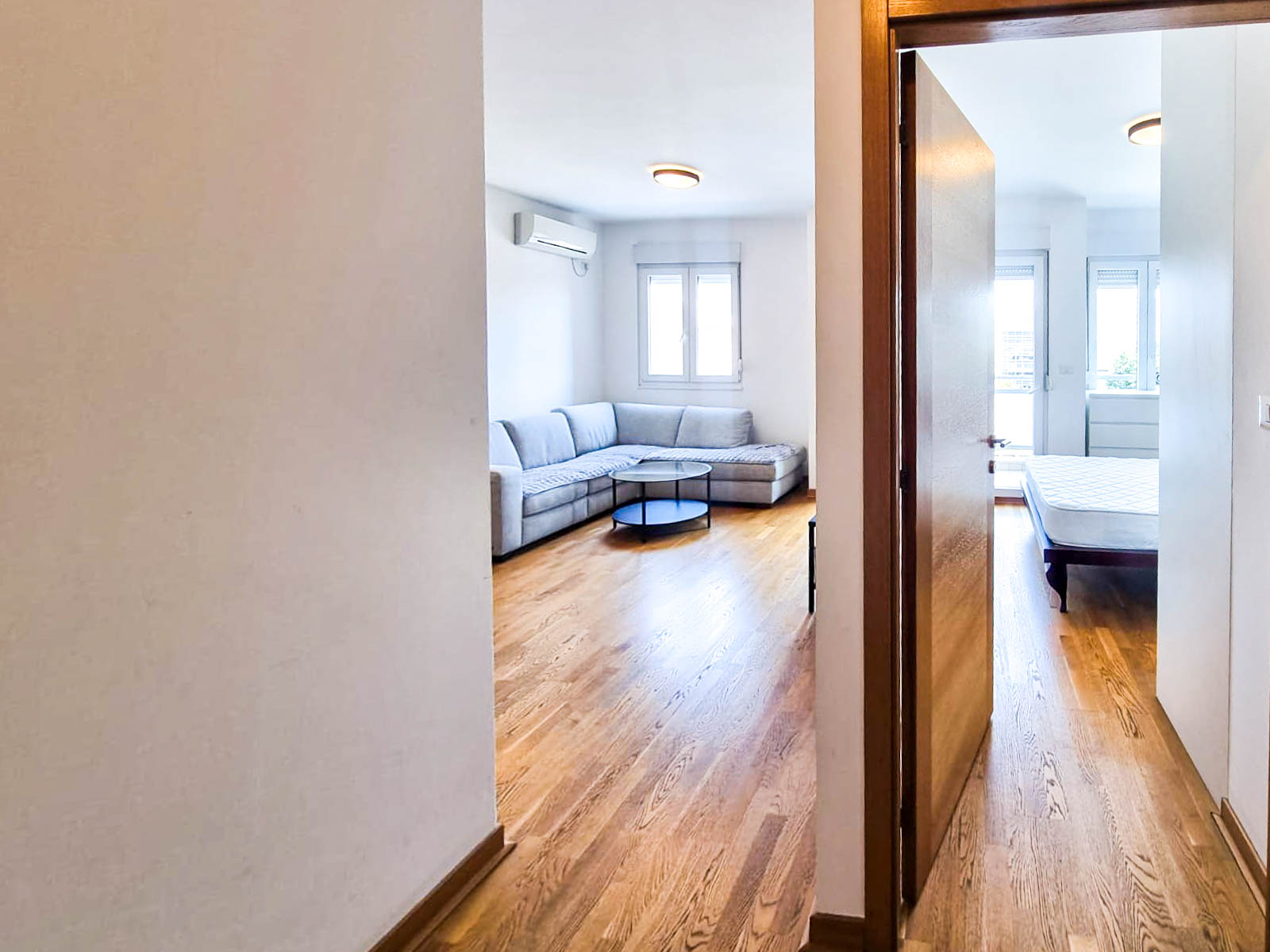 Struktura stana: ulazni hodnik, dnevni boravak sa trpezarijom i kuhinjom, spavaca soba, kupatilo, balkon sa pogledom na bulevar.